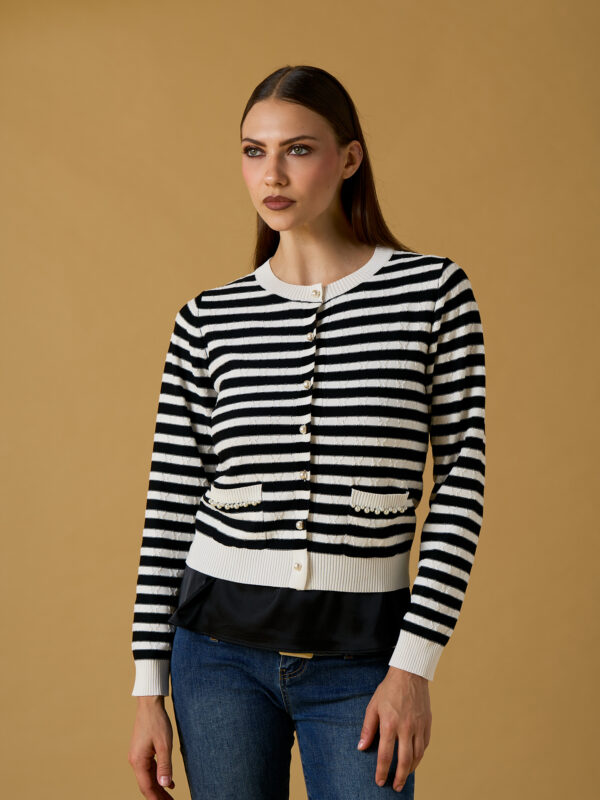CHAQUETA DE PUNTO A RAYAS Y PERLAS
