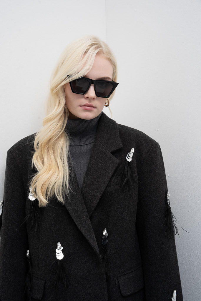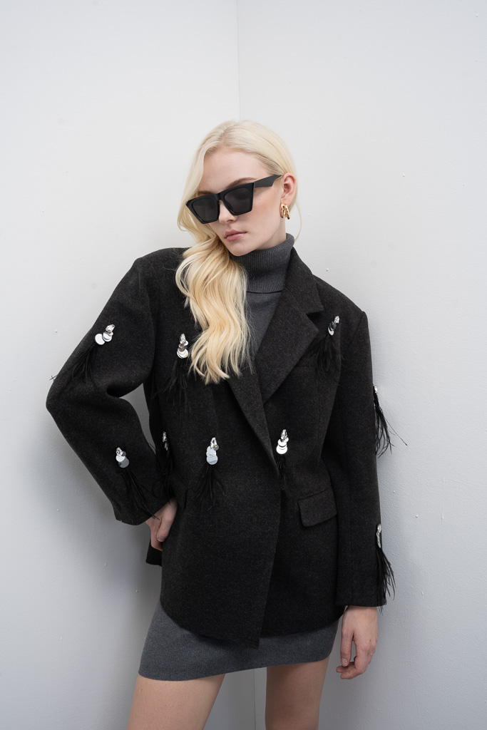 CHAQUETA TOKYO -Chaqueta estructurada con adornos de joyas y plumas