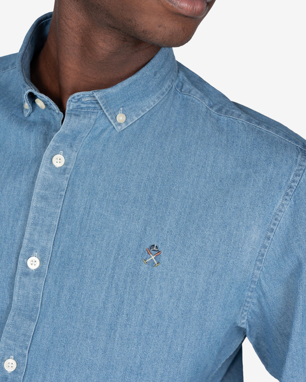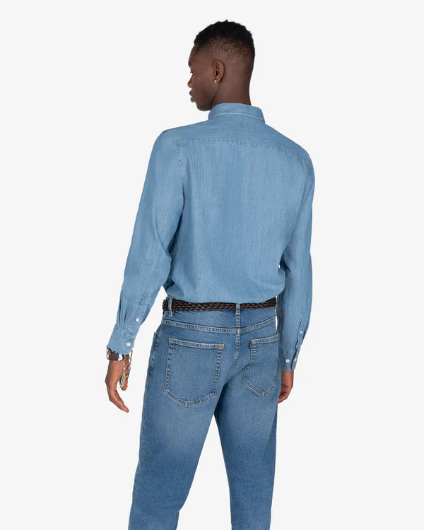 Camisa vaquera confeccionada en algodón, con lavado medio y estructura firme. Un clásico actualizado, fácil de combinar con chinos, joggers o bajo una sobrecamisa.