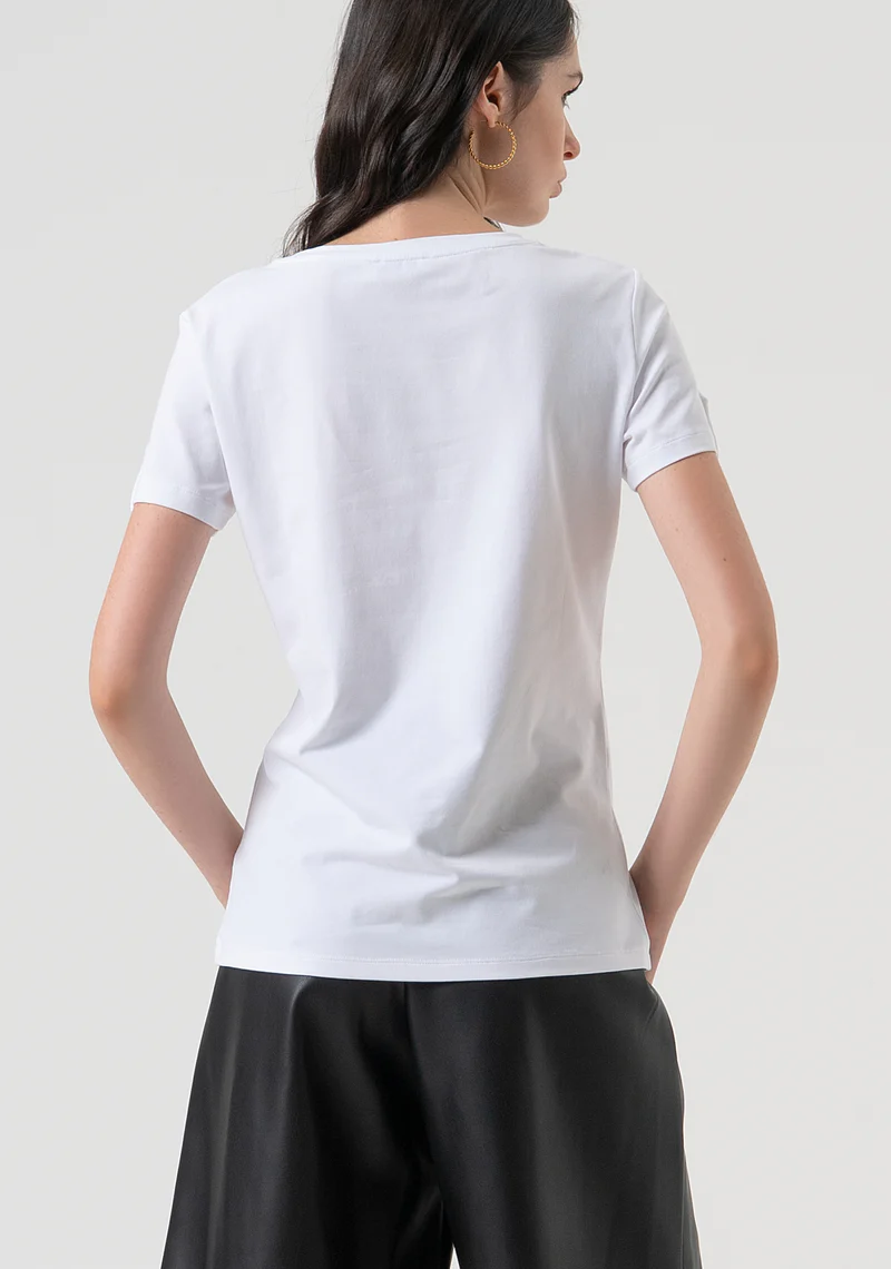 Camiseta regular fit confeccionada en jersey de algodón. Cuello redondo, estampado de letras con flores aplicadas y manga corta
