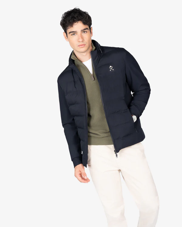 Chaqueta acolchada de corte regular, con bolsillos laterales y cierre de cremallera. El diseño incluye el logo bordado en el pecho y detalles técnicos como las cremalleras con branding, que aportan un toque dinámico y actual.