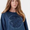 Chaqueta bomber de corte regular confeccionada en felpa con parche con logo y strasses. Cuello redondo, cremallera central para apertura, bolsillos laterales, detalles de encaje y manga larga