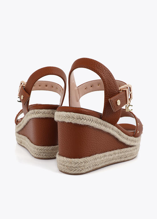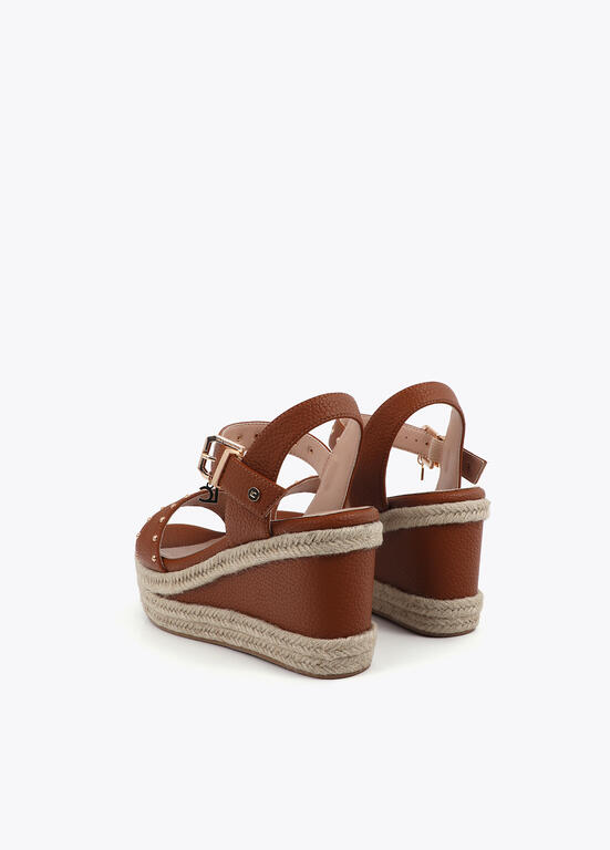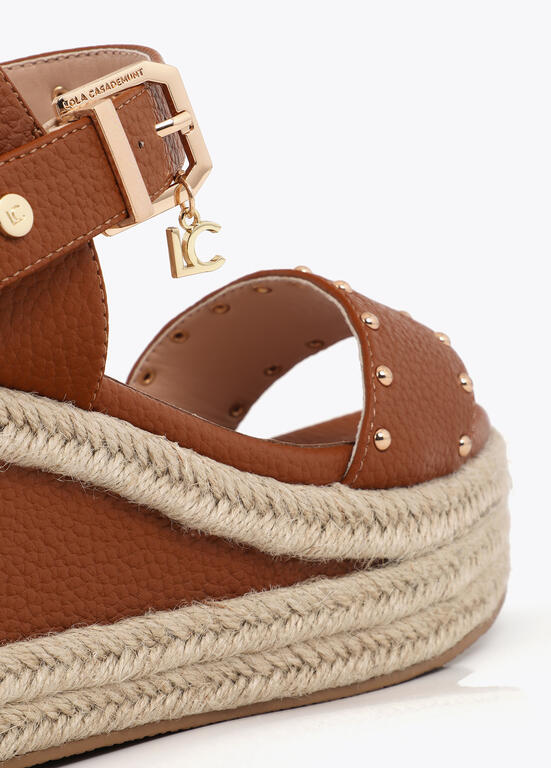 Cuña con suela en efecto rafia con detalles metálicos MARRON