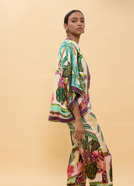Kimono estampado palmeras multicolor CRUDO-MULTICOLO