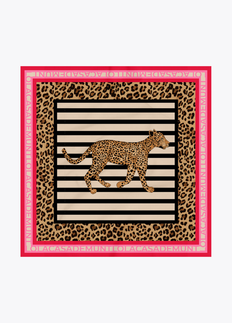 Pañuelo satinado con rayas y animal print