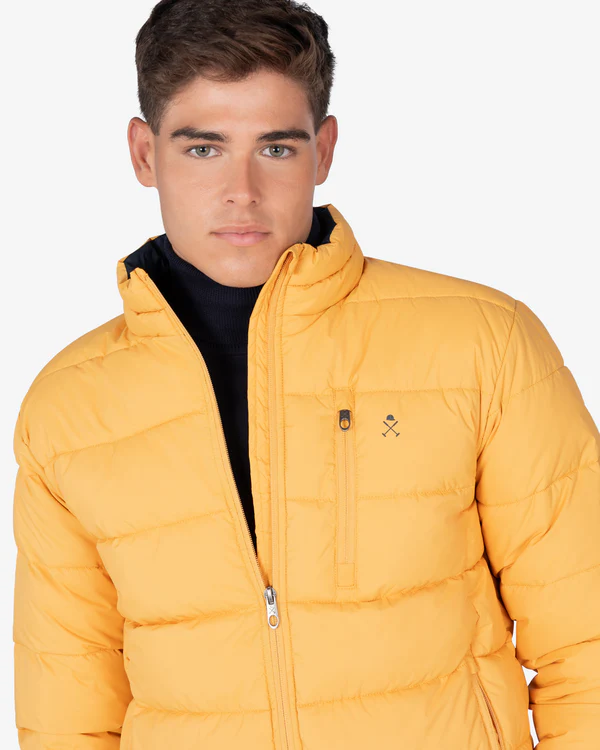 Parka acolchada de corte recto con cierre frontal de cremallera, cuello alzado y bolsillos laterales con cierre. Presenta un diseño limpio y funcional, con el logo bordado al tono en el pecho y tirador personalizado.