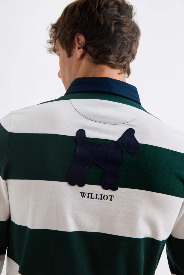Polo de manga larga con un diseño único, que incluye coderas y cuello a contraste para un toque distintivo. Sus cubrecosturas a contraste y estampado a rayas completan su estilo moderno y sofisticado. Ideal para un look elegante y cómodo con detalles exclusivos.