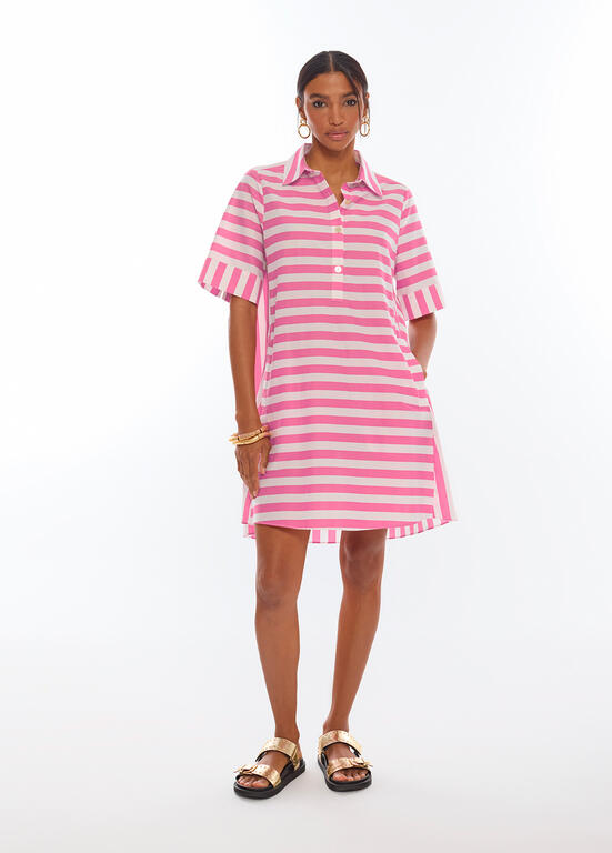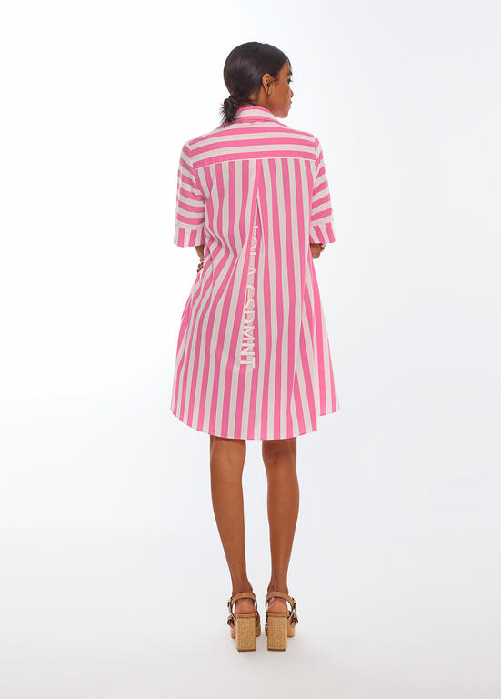 Vestido corto popelin rayas CRUDO-ROSA